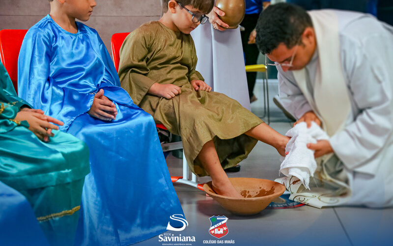 ?E, enquanto ceavam, tomou Jesus um pão e, tendo dado graças, o partiu, e o serviu aos seus discípulos, declarando: “Tomai, isto é o meu corpo” (Marcos 14,22) ?As turmas da Educação Infantil, vivenciaram na manhã desta quarta-feira (05) a Instituição da Eucaristia. Com um