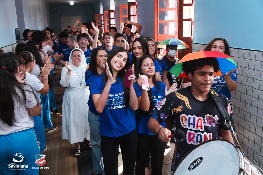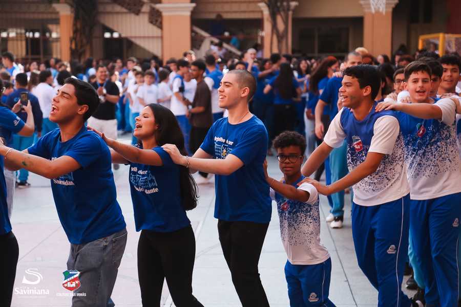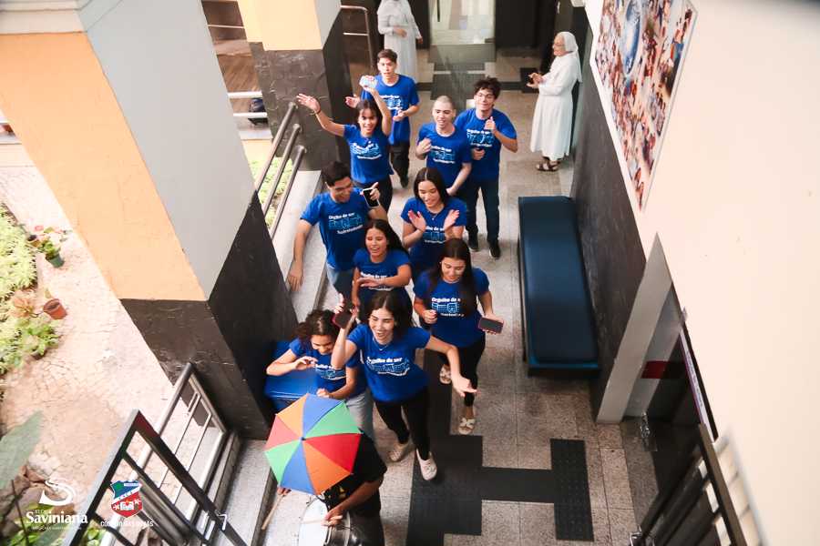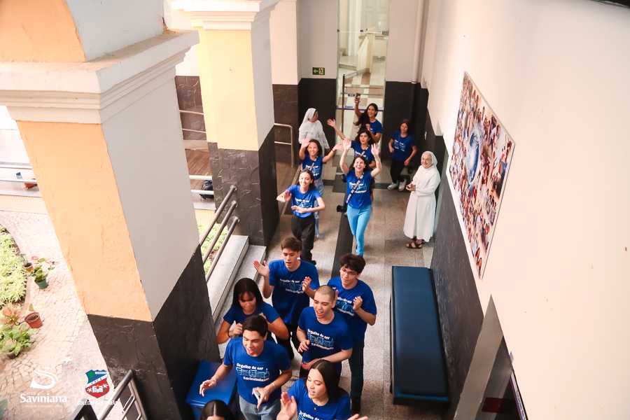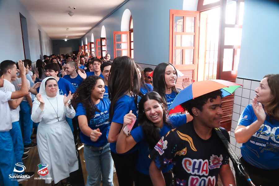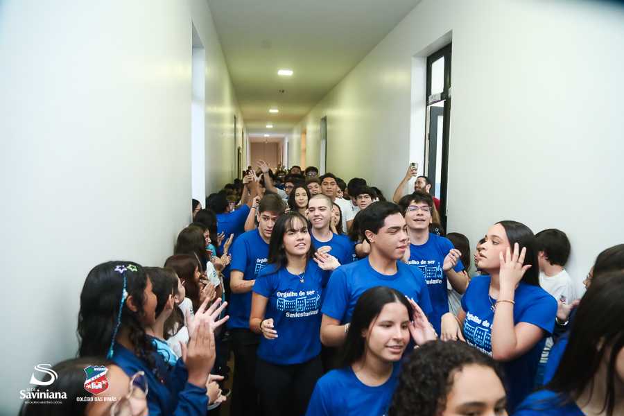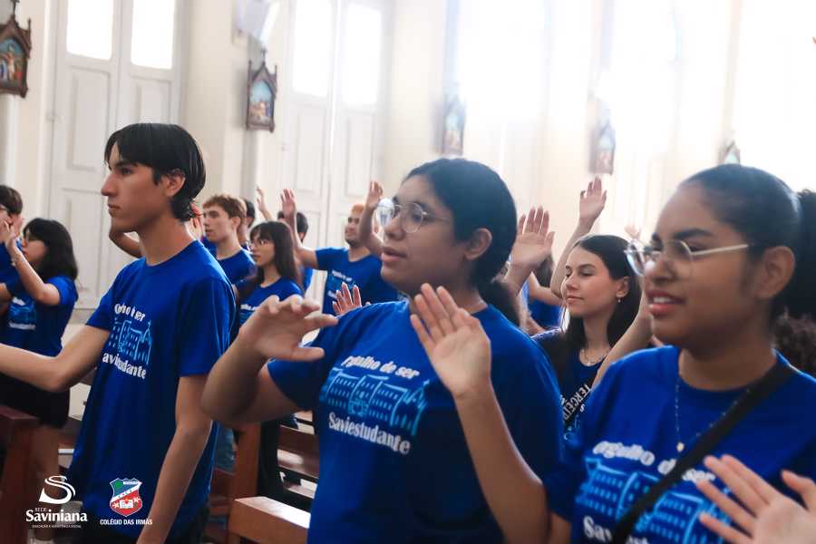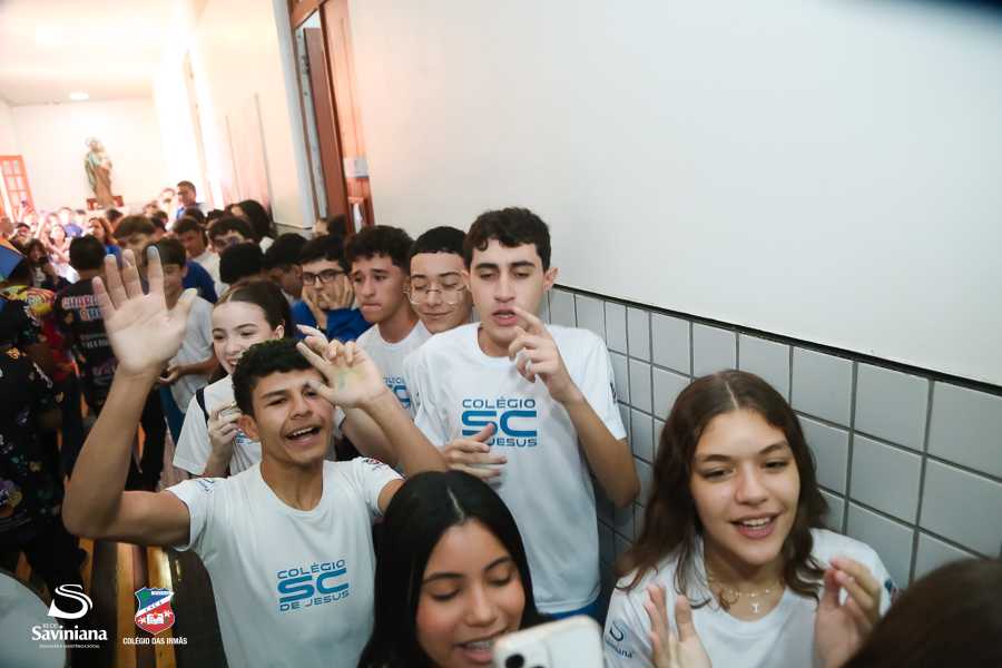 Reunida em clima de unidade, a comunidade escolar partilhou sentimentos de alegria, orgulho e gratidão pelos resultados alcançados. Durante a programação, os Saviestudantes participaram de um momento de entrega na Capela e depois seguiram percorrendo os corredores da escola e a quadra em um desfile simbólico que evidenciou o espírito de pertencimento e a vivência da fé que integra a identidade institucional.