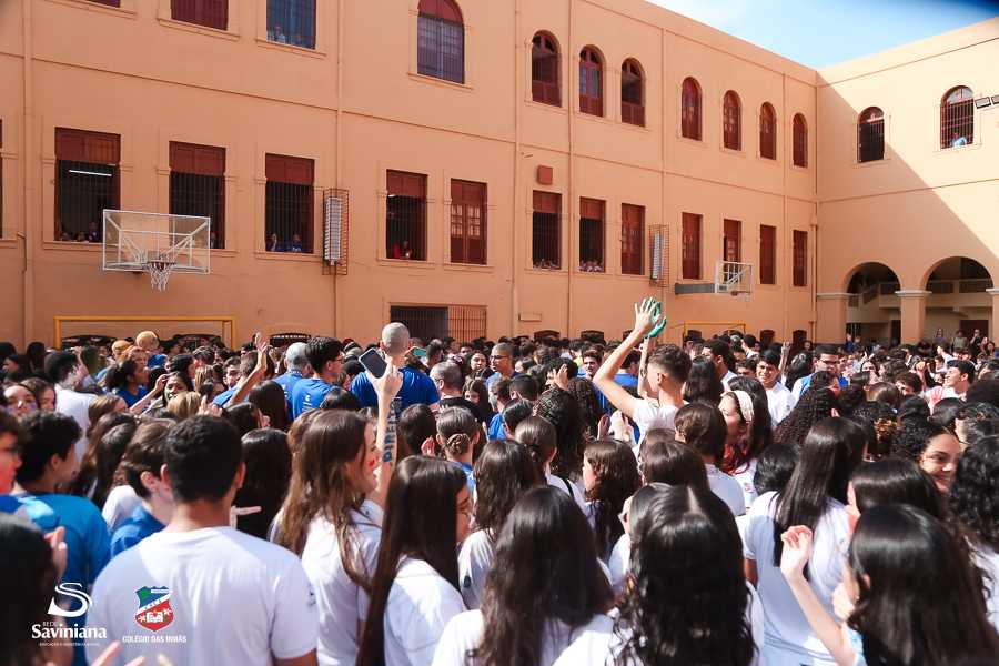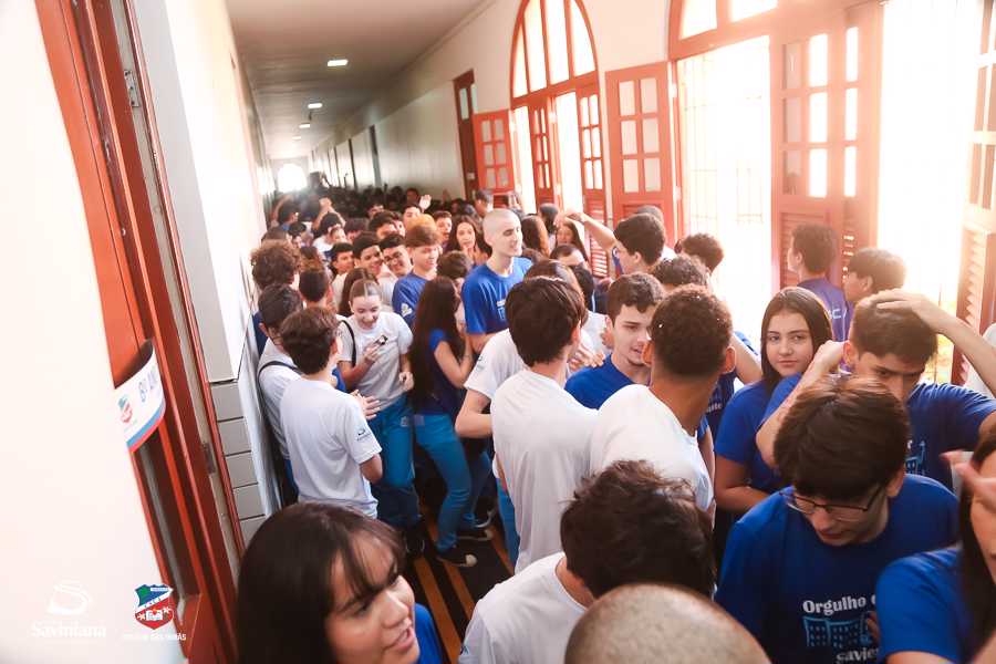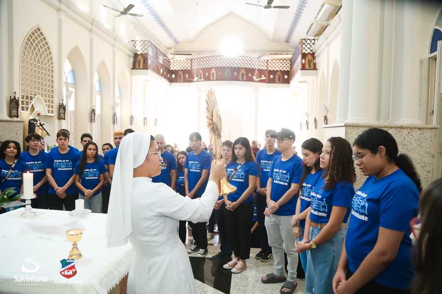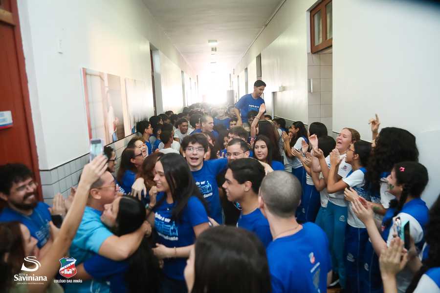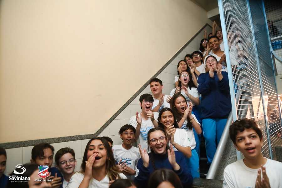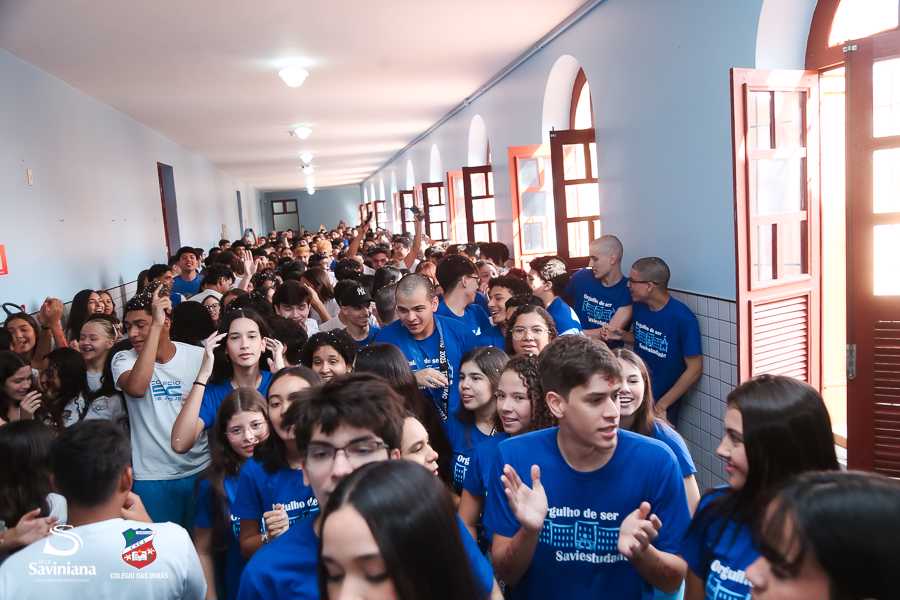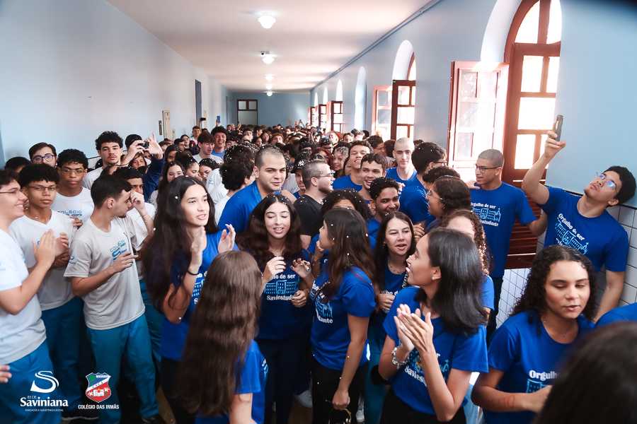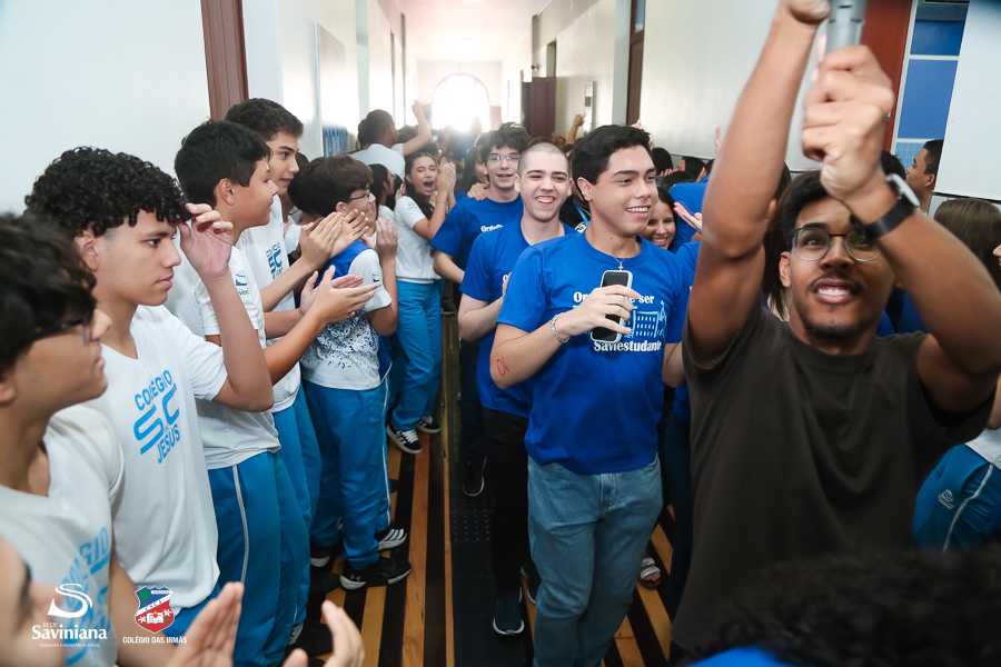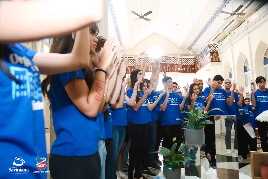 Reunida em clima de unidade, a comunidade escolar partilhou sentimentos de alegria, orgulho e gratidão pelos resultados alcançados. Durante a programação, os Saviestudantes participaram de um momento de entrega na Capela e depois seguiram percorrendo os corredores da escola e a quadra em um desfile simbólico que evidenciou o espírito de pertencimento e a vivência da fé que integra a identidade institucional.