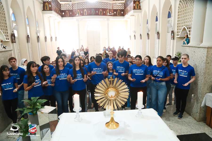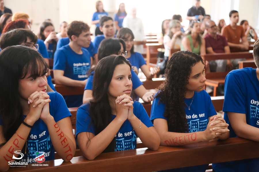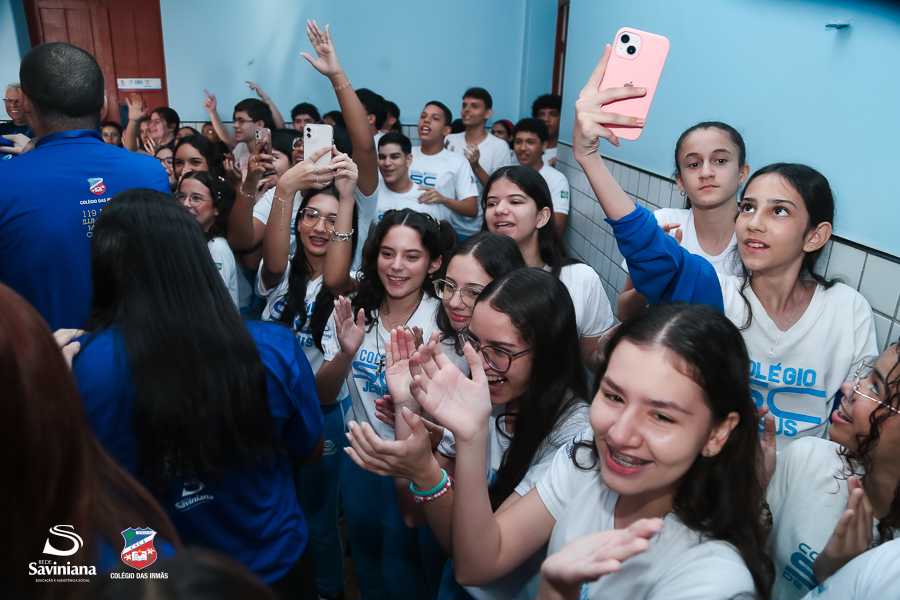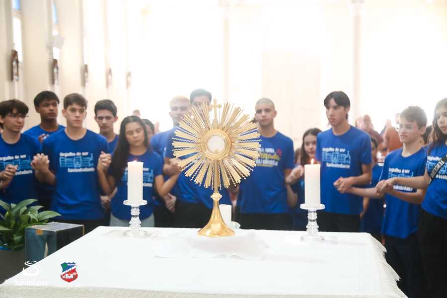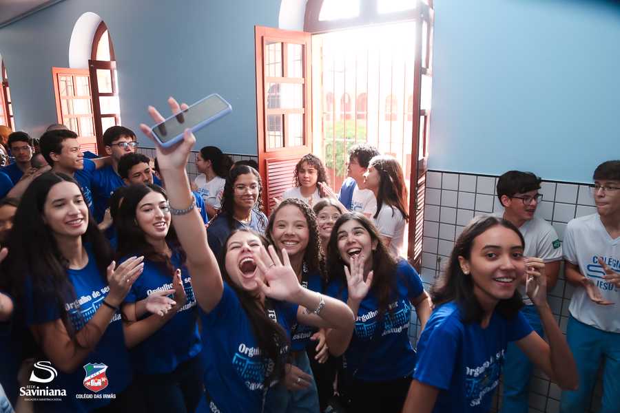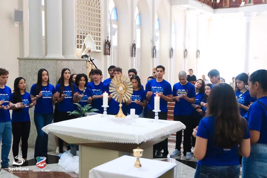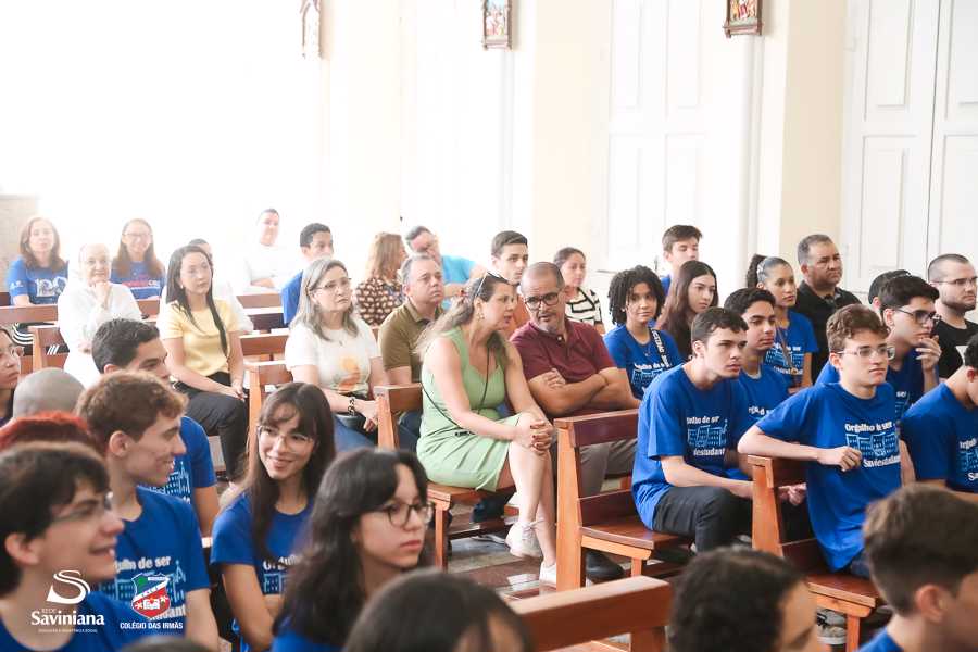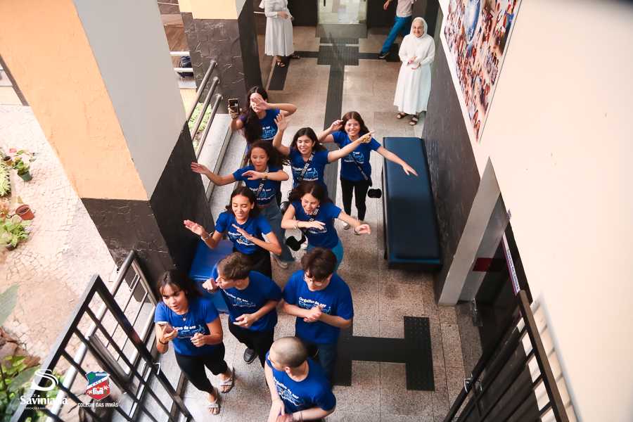 Reunida em clima de unidade, a comunidade escolar partilhou sentimentos de alegria, orgulho e gratidão pelos resultados alcançados. Durante a programação, os Saviestudantes participaram de um momento de entrega na Capela e depois seguiram percorrendo os corredores da escola e a quadra em um desfile simbólico que evidenciou o espírito de pertencimento e a vivência da fé que integra a identidade institucional.
