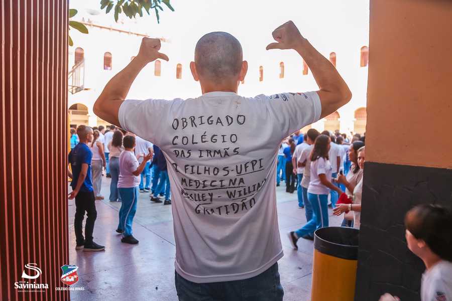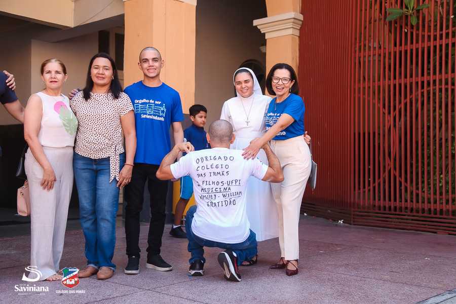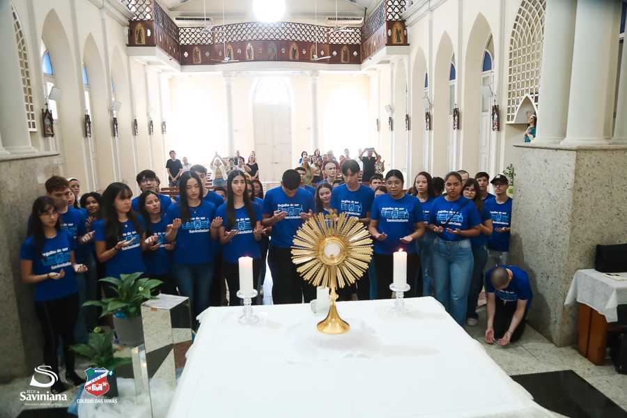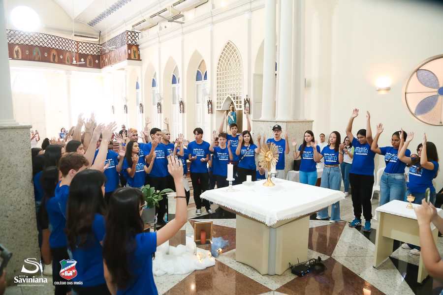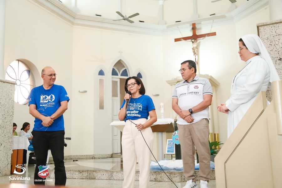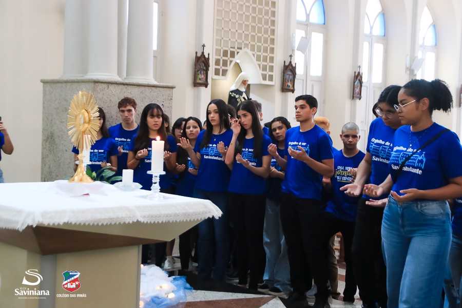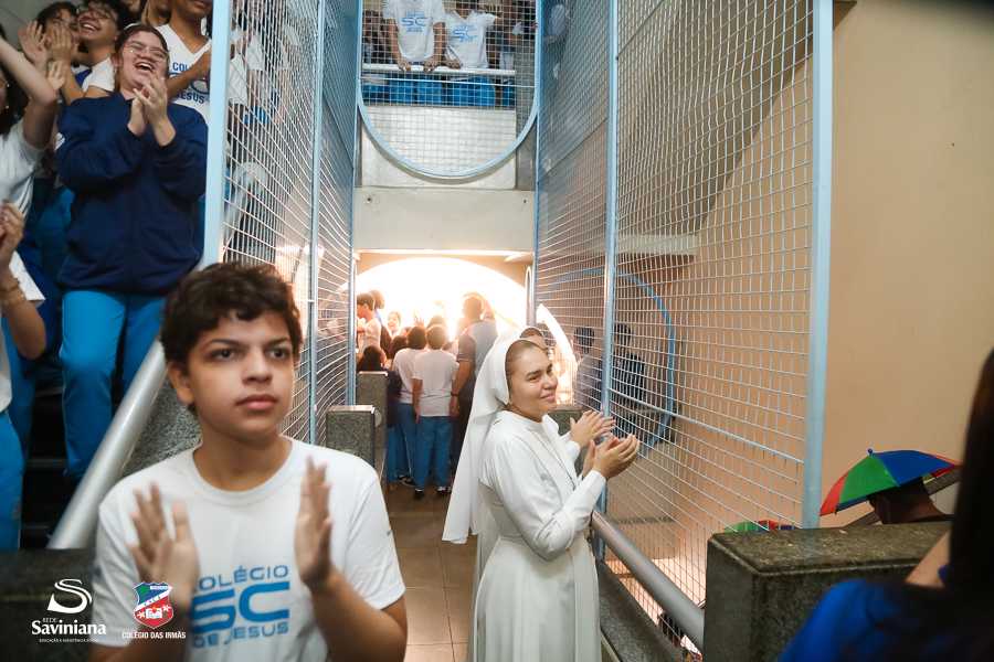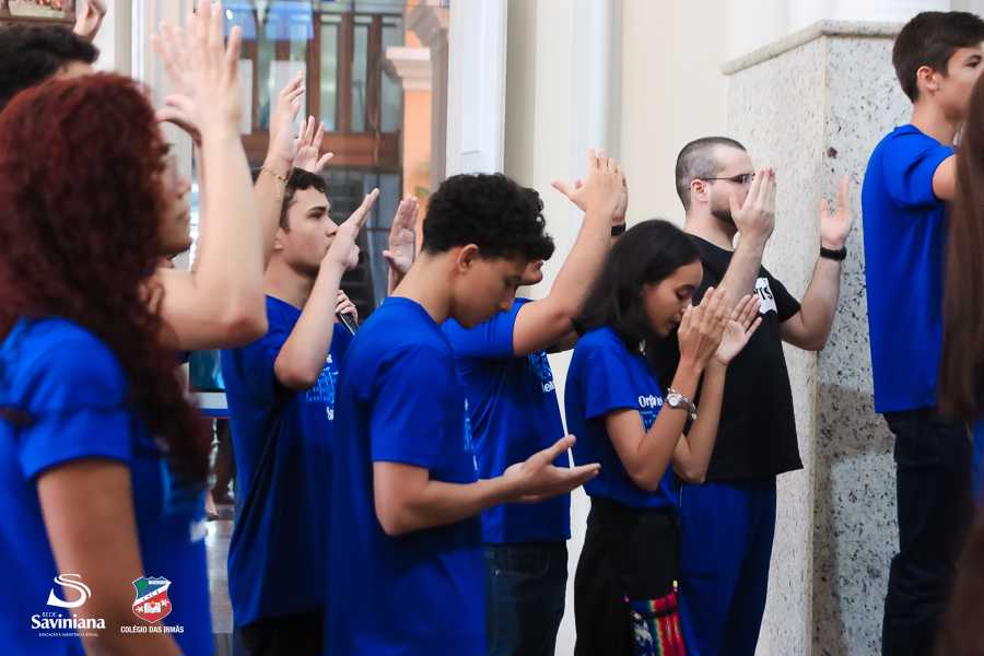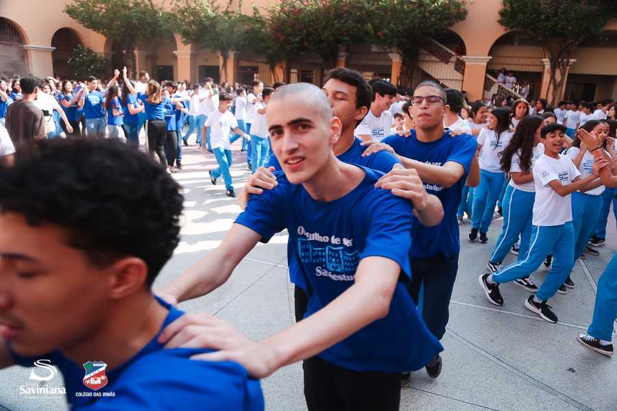 Reunida em clima de unidade, a comunidade escolar partilhou sentimentos de alegria, orgulho e gratidão pelos resultados alcançados. Durante a programação, os Saviestudantes participaram de um momento de entrega na Capela e depois seguiram percorrendo os corredores da escola e a quadra em um desfile simbólico que evidenciou o espírito de pertencimento e a vivência da fé que integra a identidade institucional.