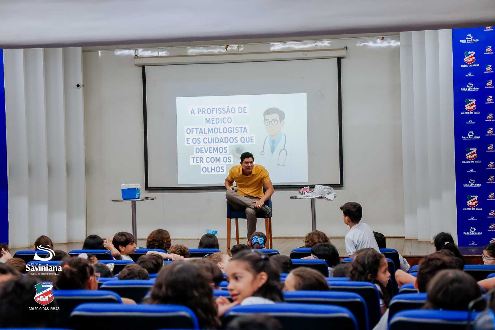 Nossos alunos do 2º ano do Ensino Fundamental participaram de uma palestra educativa com o oftalmologista Dr. Paulo Henrique Lopes, sobre a importância da visão e os principais cuidados com os olhos.
