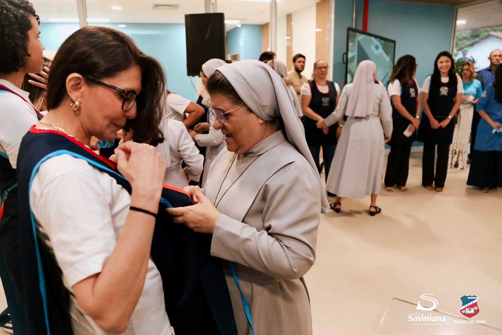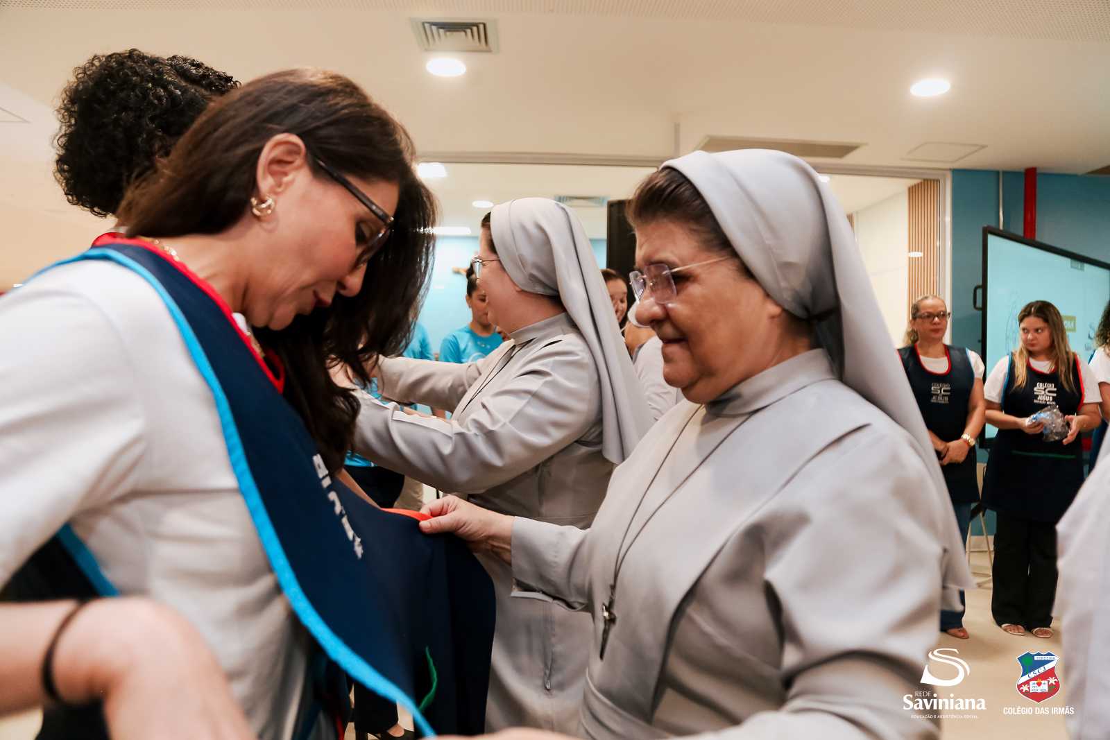 Entre os ritos mais marcantes da cerimônia esteve a entrega do fardamento às educadoras da nova unidade. O momento, carregado de significado, expressou o “revestir-se da missão” e o compromisso de ser presença acolhedora, luz e orientação na trajetória de cada estudante. Ao vestirem o uniforme, as professoras assumem publicamente a responsabilidade de conduzir, com dedicação e sensibilidade, os primeiros passos de muitas histórias que ali serão escritas.